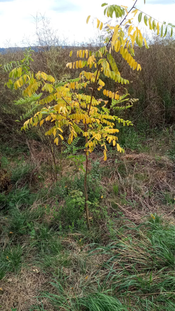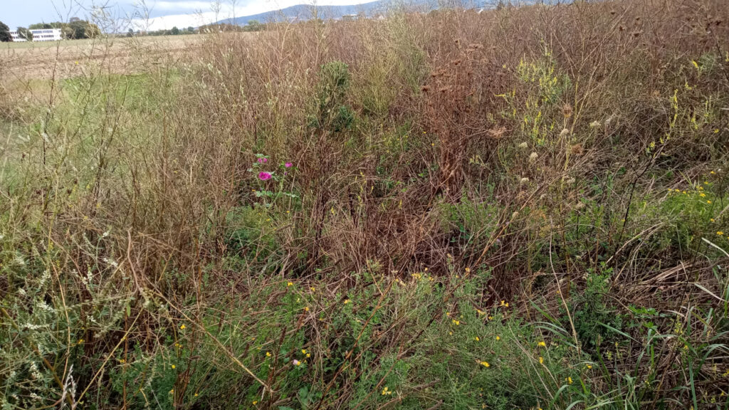 Die ersten Baumsetzlinge haben sich etabliert. Wenn wir jetzt nicht bald umbrechen, dann holt sich der Wald diese Fläche langsam wieder zurück.